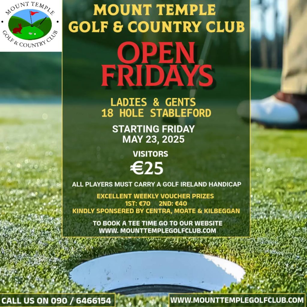 Mount Temple Golf & Country Club are running their weekly Friday Open. To secure your tee-time click the following link: https://visitors.brsgolf.com/mounttemple#/course/1